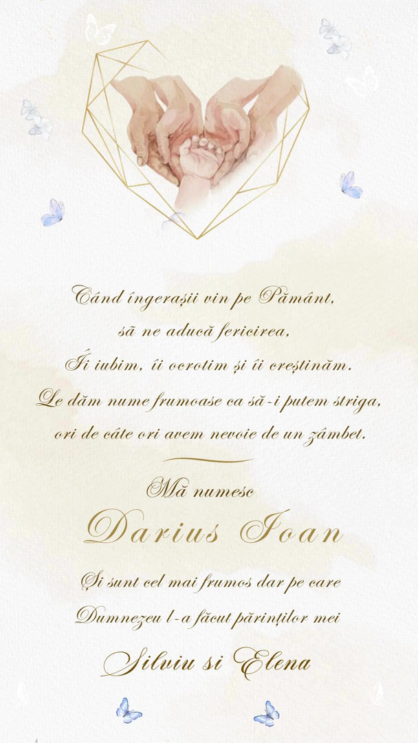 Invitație Video Digitală Botez Băiat Ilustrație Mâini si Inima